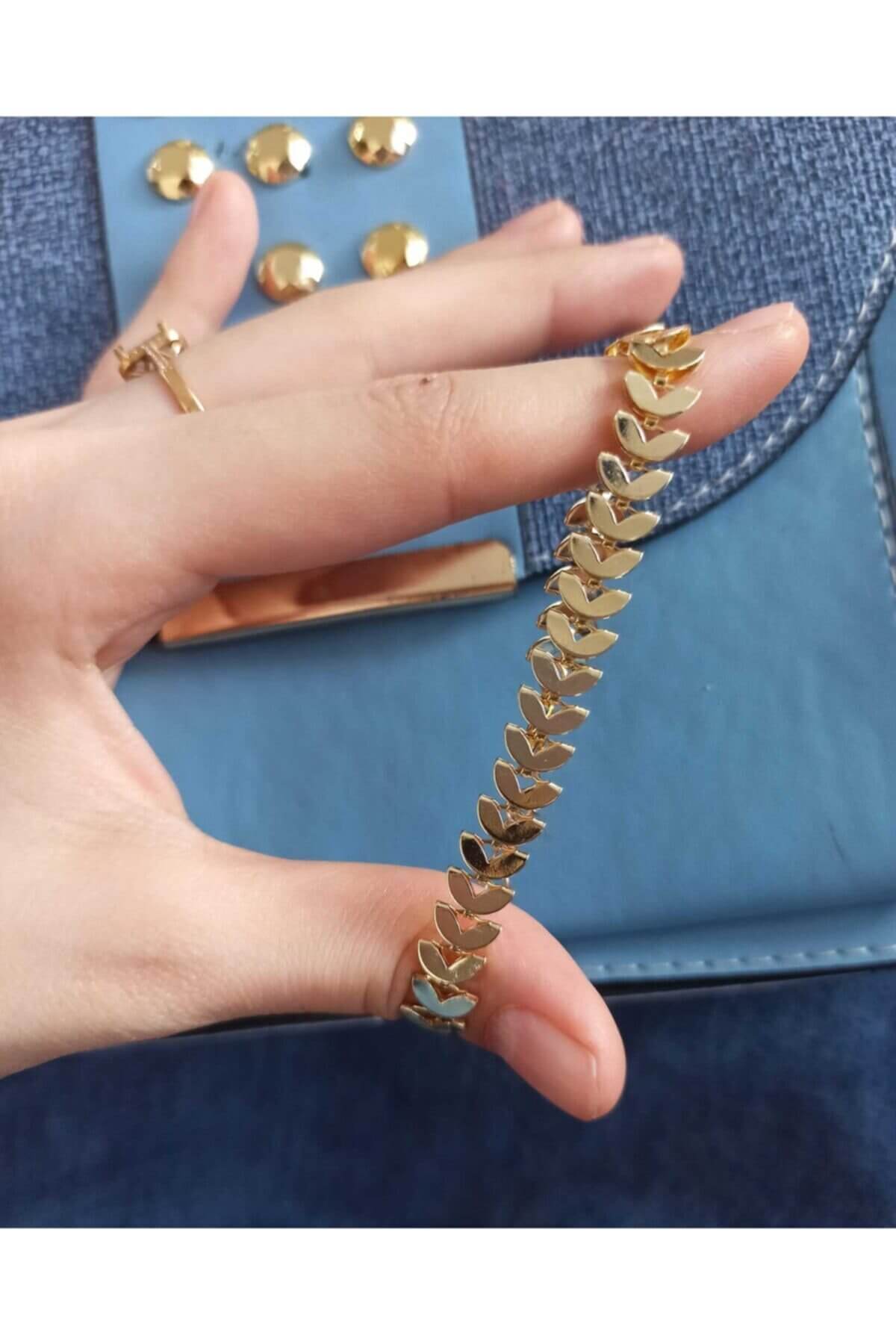 Gold Renk Metal Kordon Kadın Kol Saati & Yanındaki Bileklikler İle Beraber